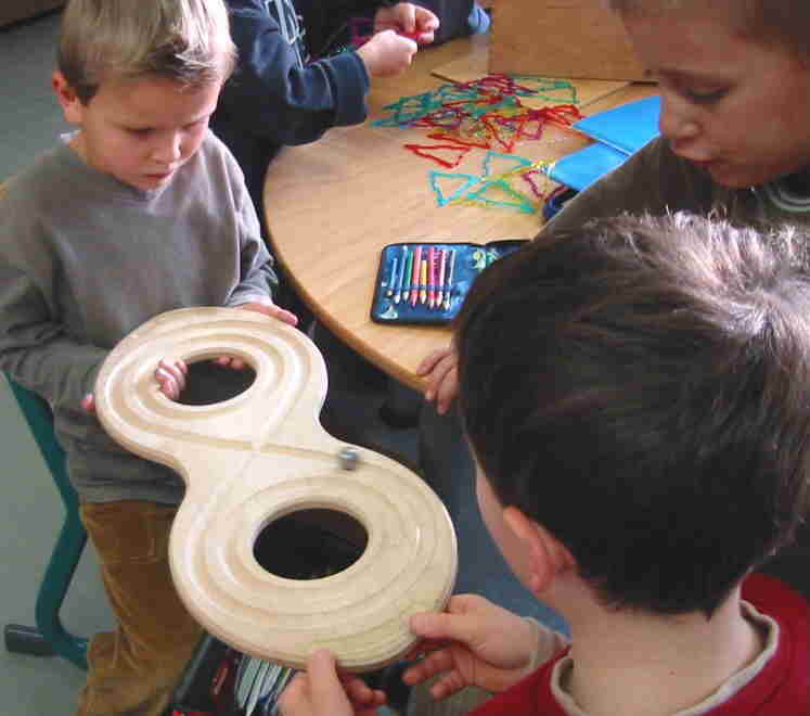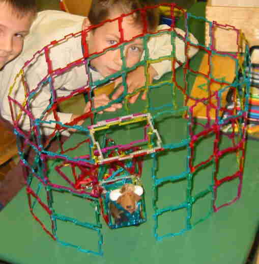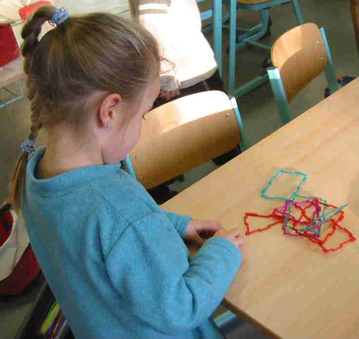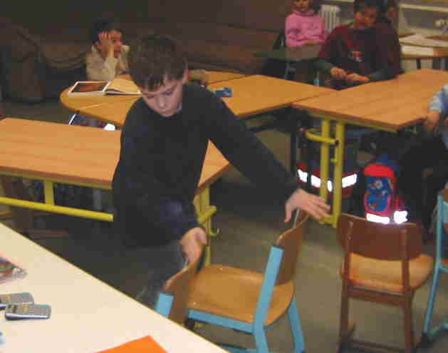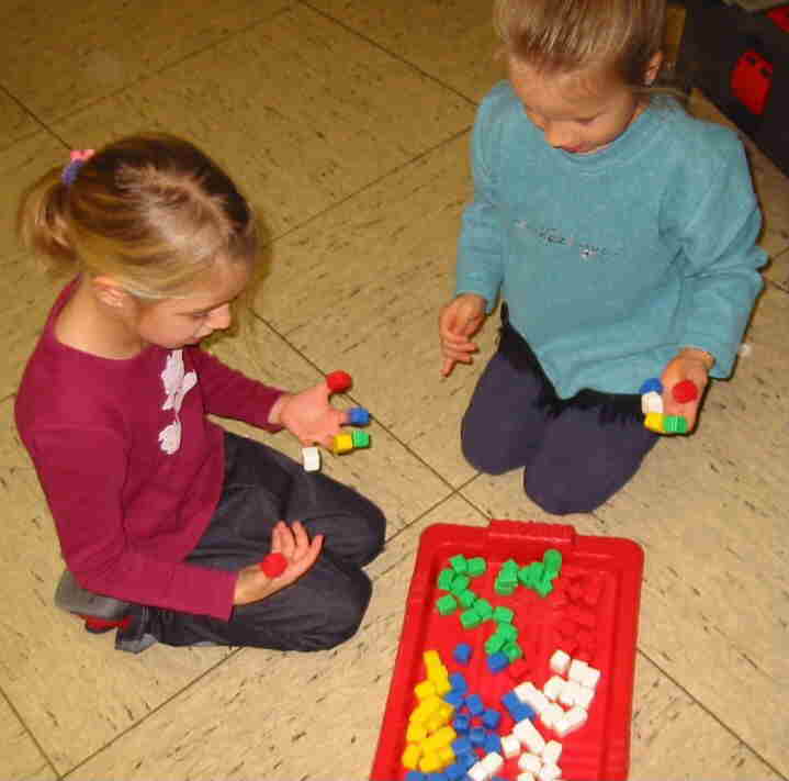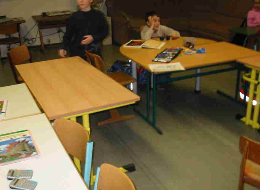"Einrichten" Kinder stellen sich die Tische und Stühle passend. |