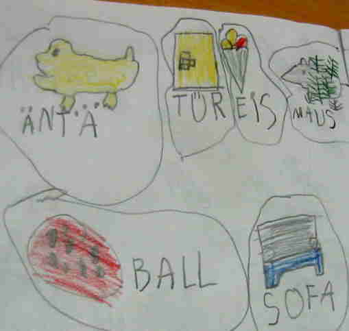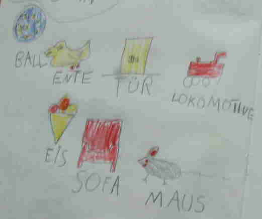 Alle Kinder "konnten" das auch zeichnen und die Wörter dazu schreiben. |