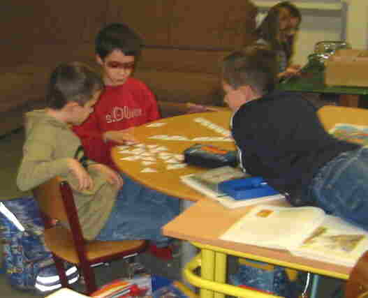 1/2 und dann arbeiten Erst- und Drittklässler (42 Kinder) in zwei