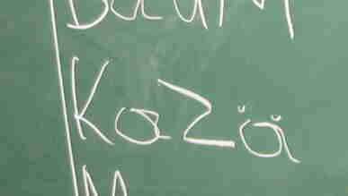 Das Wort KAZÄ vom Vortag wurde schon weiter entwickelt. Nur Geduld, in ein paar Tagen sieht es aus wie im Wörterbuch. Das Kind prägt sich Geschriebenes nicht ein, es stellt Beziehungen dazu her. |