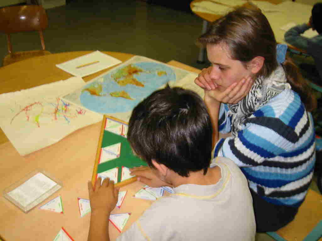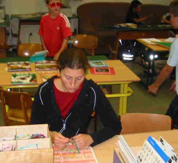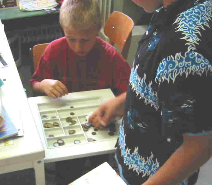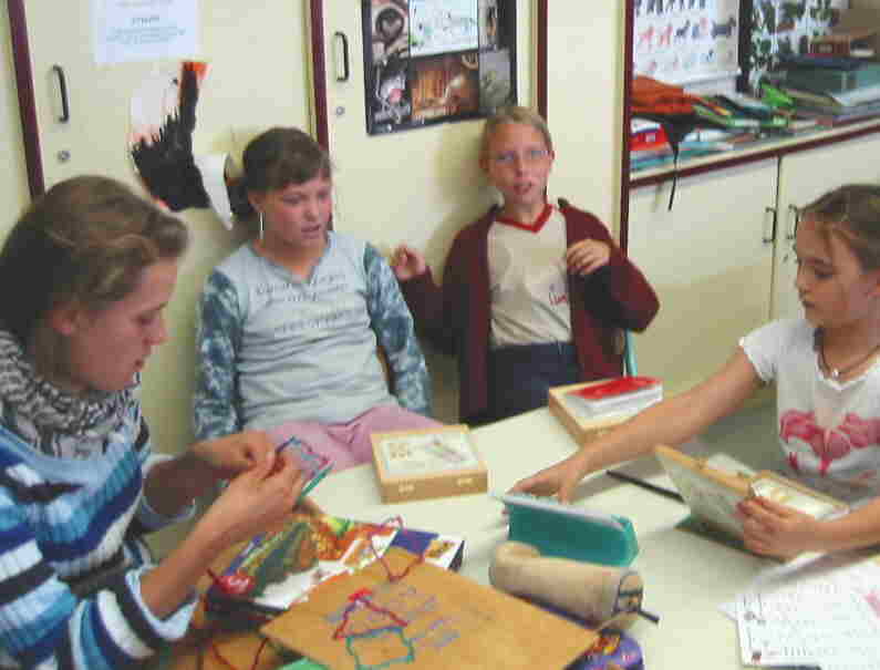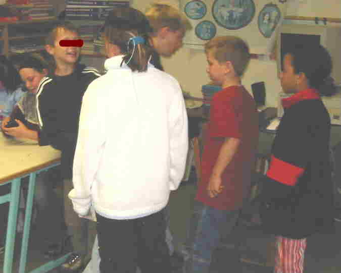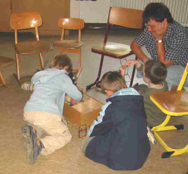 Die Kinder wollen den Lehrertisch aufräumen. So hat er vorher ausgesehen..... |