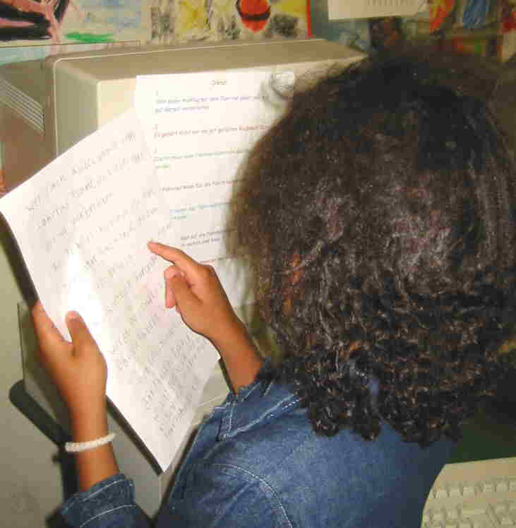 unglaubliche Beharrlichkeit Sie hat drei Schulstunden am Laufdiktat gearbeitet und es hinterher gründlich kontrolliert. Fast keine Schreibfehler. |