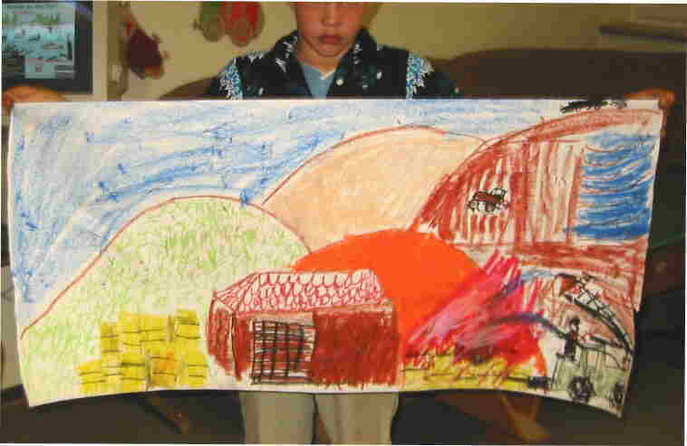 Das Mal-Team hat wieder ein tolles Bild geschaffen. Der "Künstler" hält es hoch. |