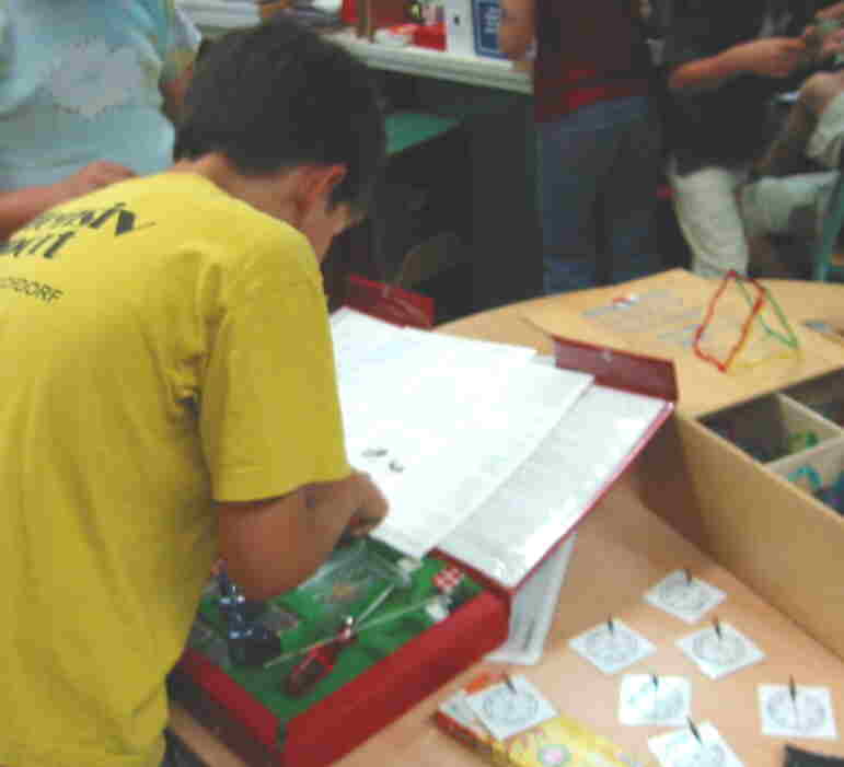 Felix baut jede Menge Kompasse und entdeckt das Handbuch. |