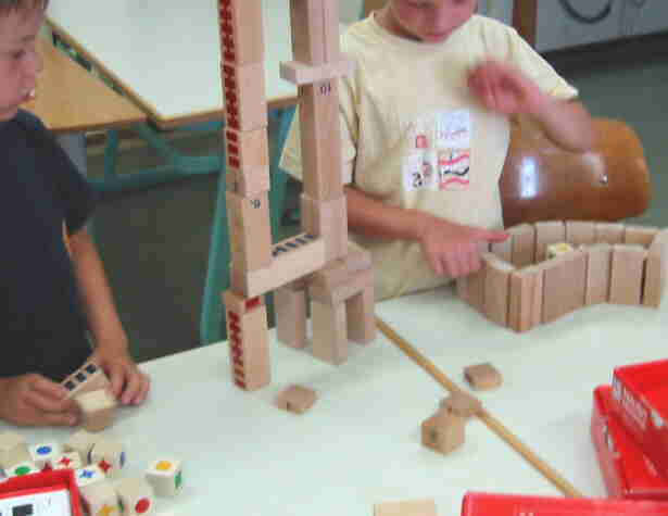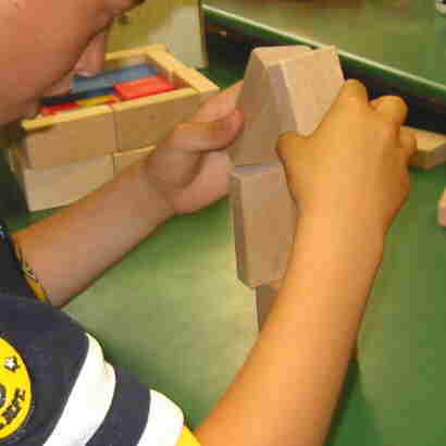 Mit den Klötzen der Lernuhr lässt sich auch etwas bauen. |