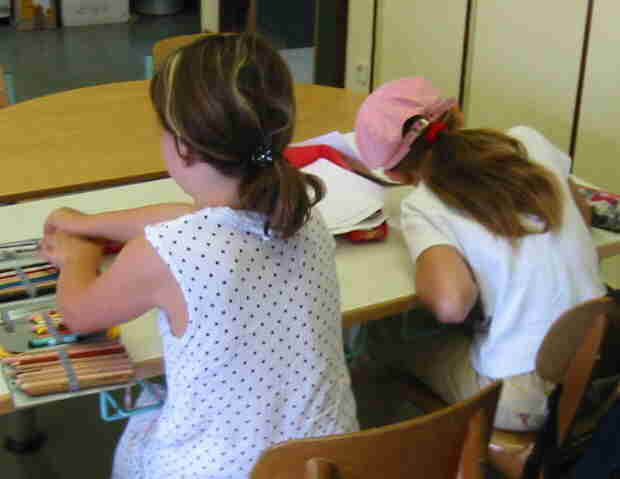 Vier Bilder aus wenigen Minuten der gleichen Schulstunde |