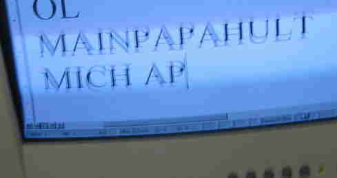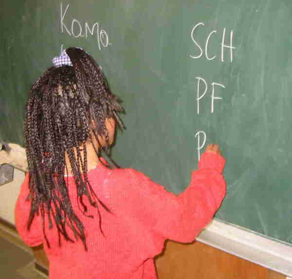 Experimentieren mit Schrift und Sprache. Das Kind schreibt was es von niemandem gelernt hat. |