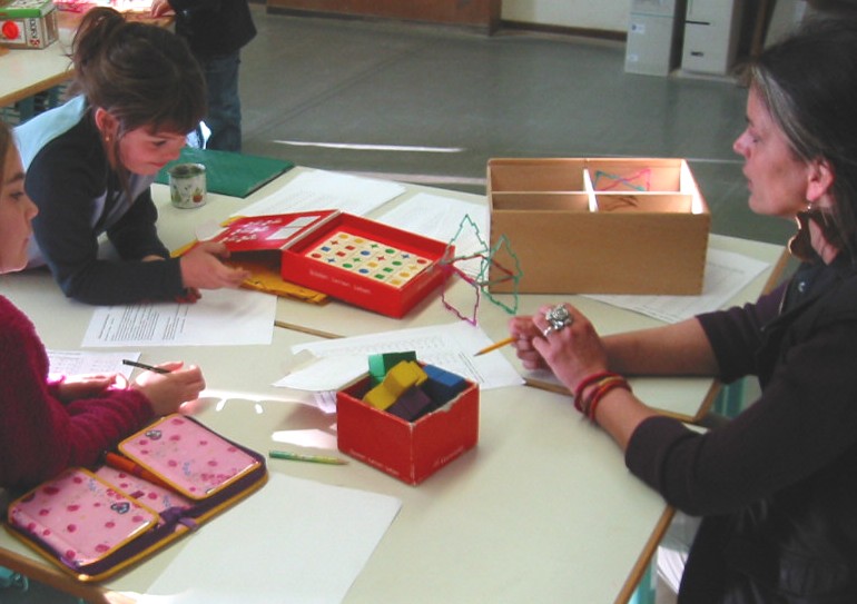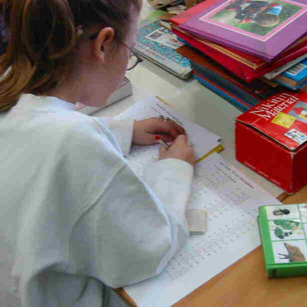 Sie kontrolliert ihr Mathematikblatt selber. |
