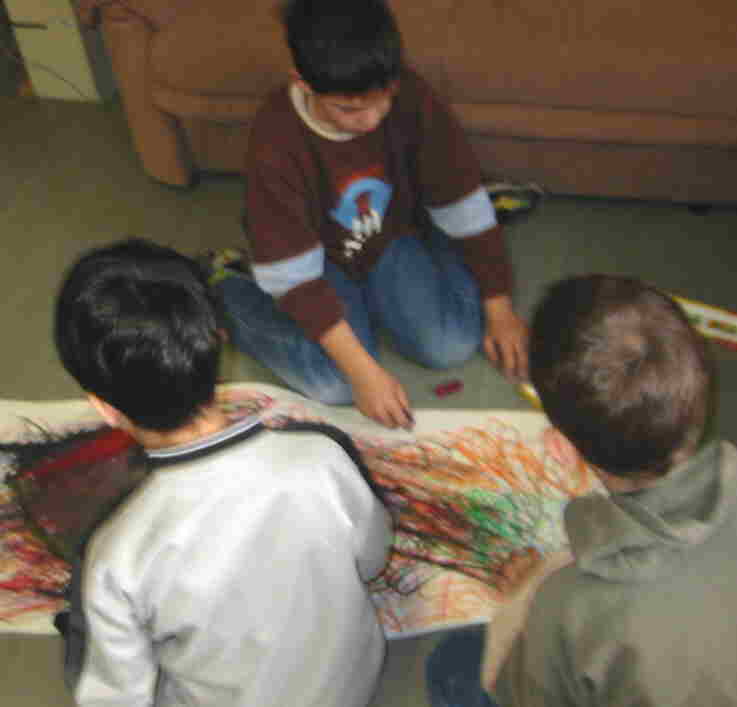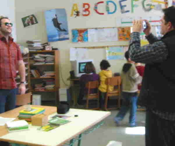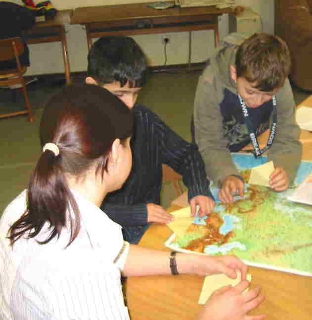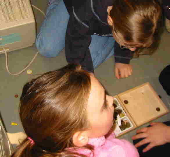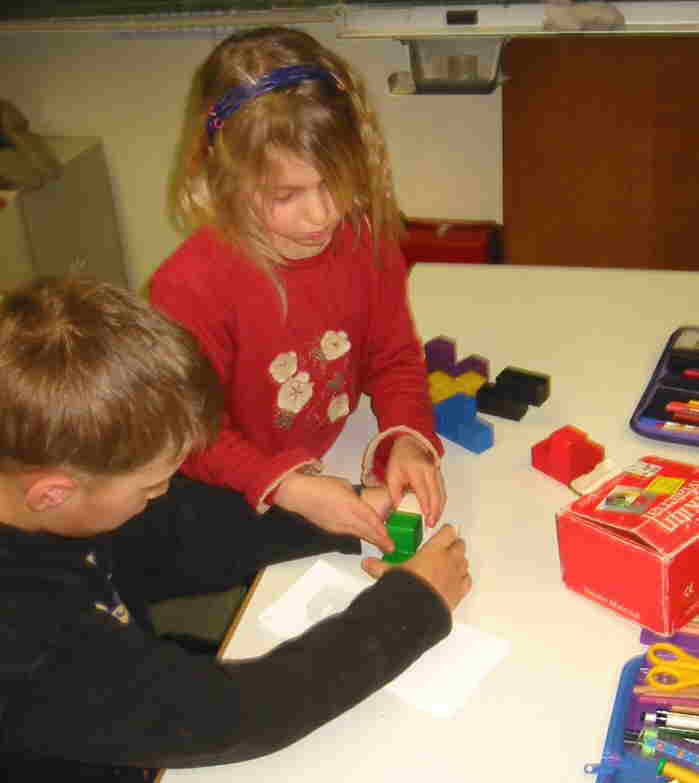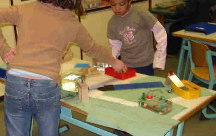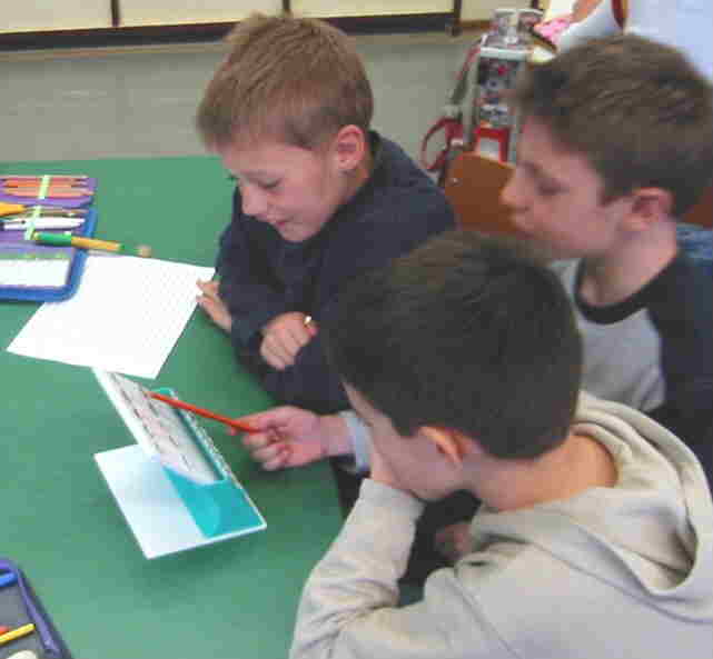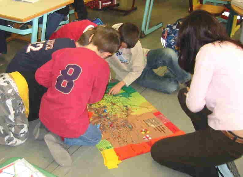 im Schulzimmer der Drittklässler am PC bei dem Programm Mittelalter. Sie bauen ein Fachwerkhaus zusammen. Niemand hat ihnen das "beigebracht". |