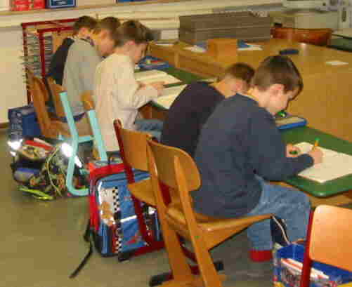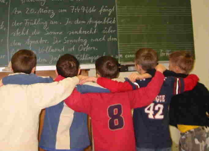 seltsamen Sitzordnung heute Fast alle Kinder sitzen dicht beieinander hinten. |