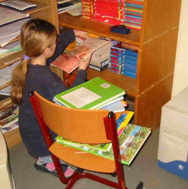 Die letzte Schulstunde in der Woche heißt Bücherstunde. |