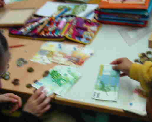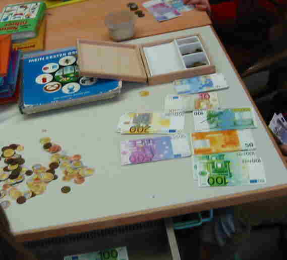 reger Handel Täglich schreibe ich, auf Anfrage inzwischen, den "Betrag" an die Tafel. Soviel Geld soll jedes Kind zum Rechnen bekommen. |