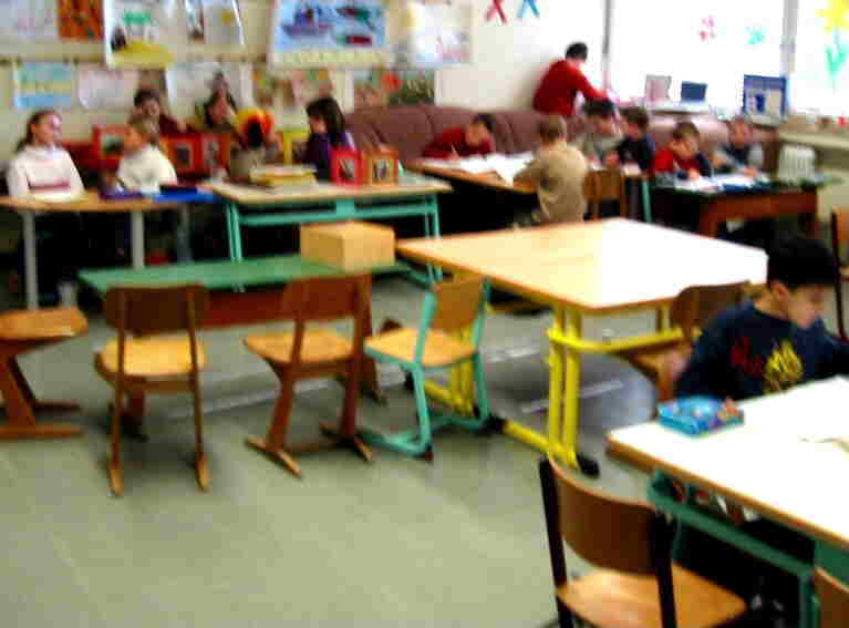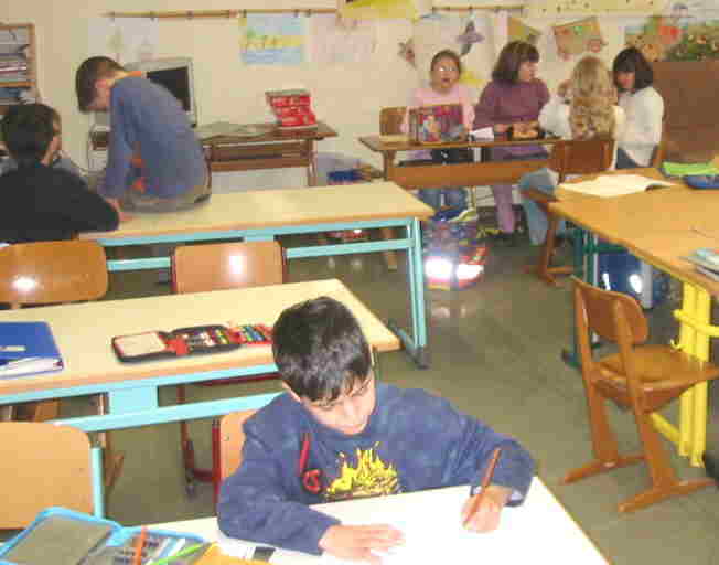 Morgens 7:45 Uhr, eine kleine Erstklässlerin ist im Zimmer der Drittklässler zugelaufen. |