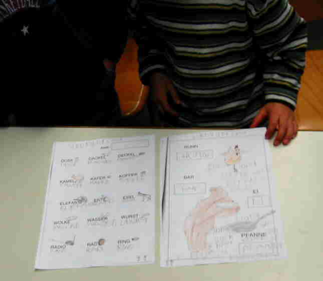 Von mir sind nur die Anfangsbuchstaben. Sie hat in einer Schulstunde sicher hundert Wörter geschrieben. |