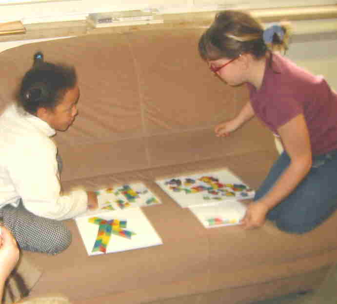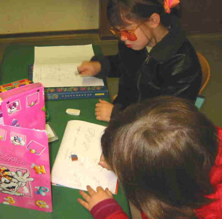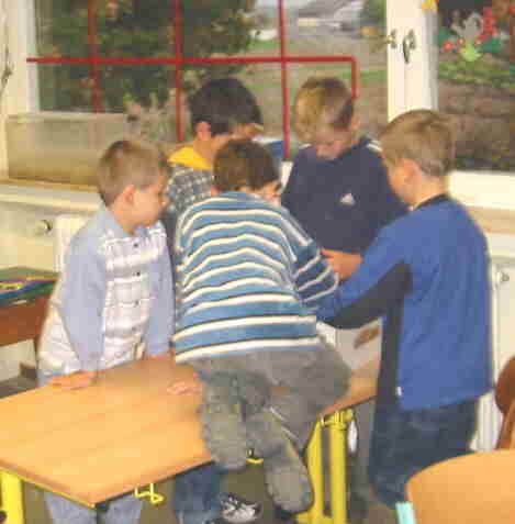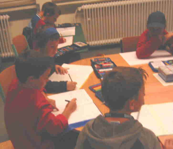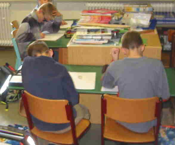 Hier arbeiten die kleinen Jungen intensiv. In den Arbeitspausen balgen sie sich auf dem Sofa. Es ist kein Streit. |
