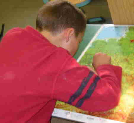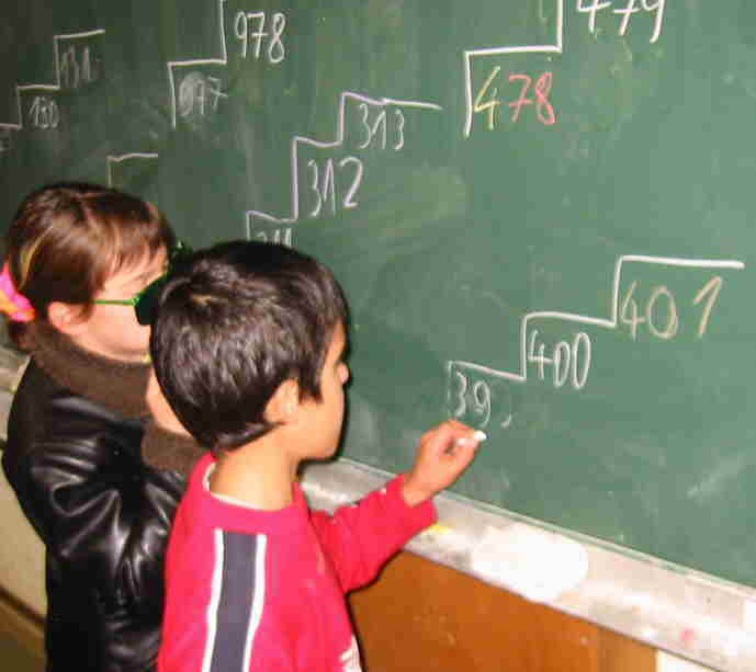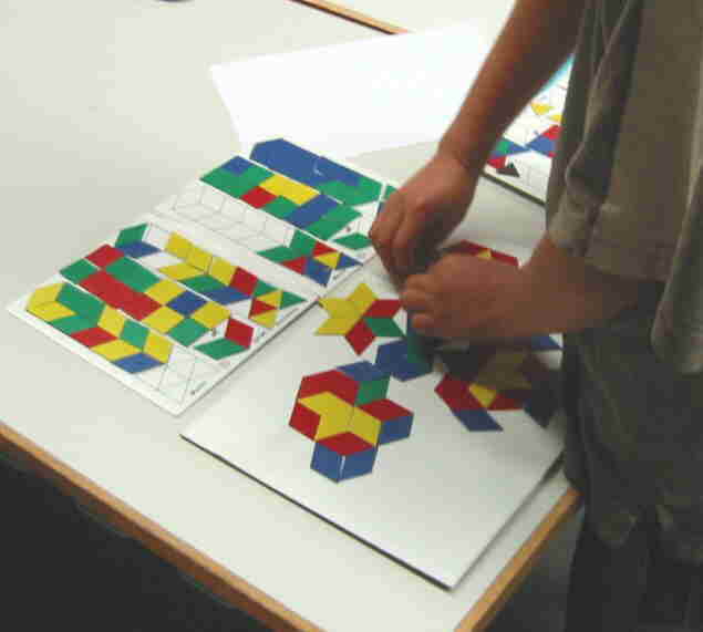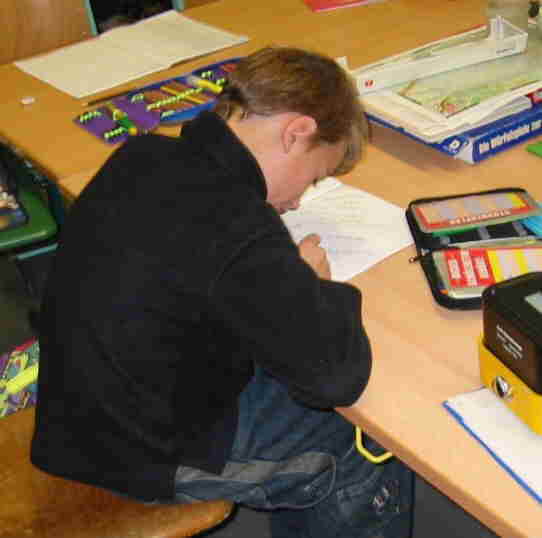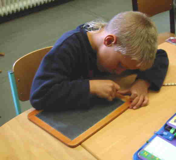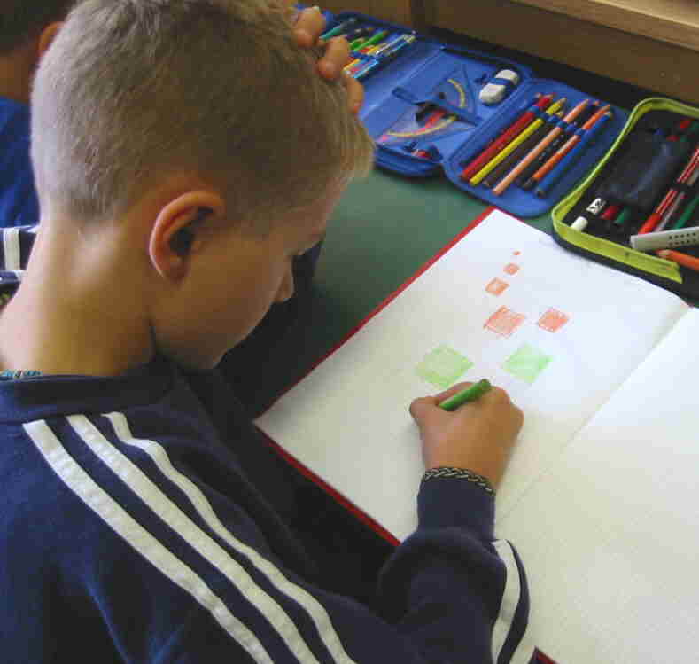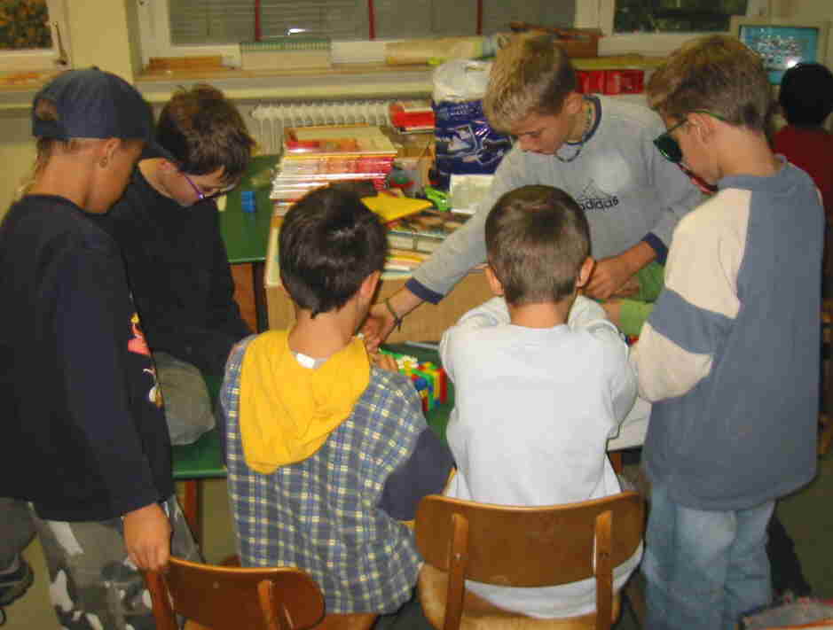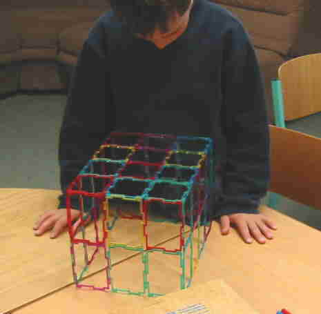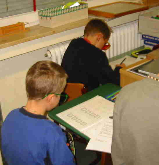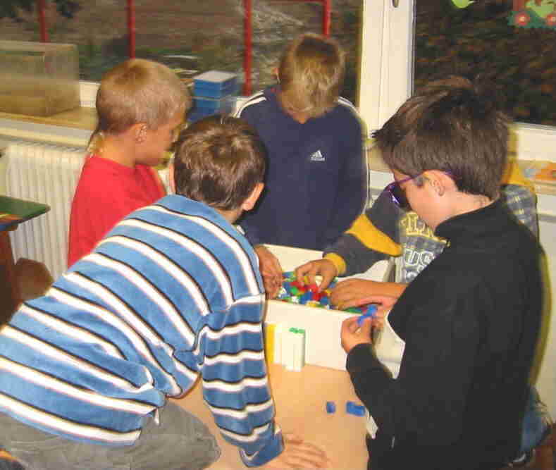Direkt neben ihm arbeitet eine Fünfer-Gruppe mit Steckwürfeln. Seine Konzentration ist nicht beeinträchtigt dadurch. Wie man sehen kann... |