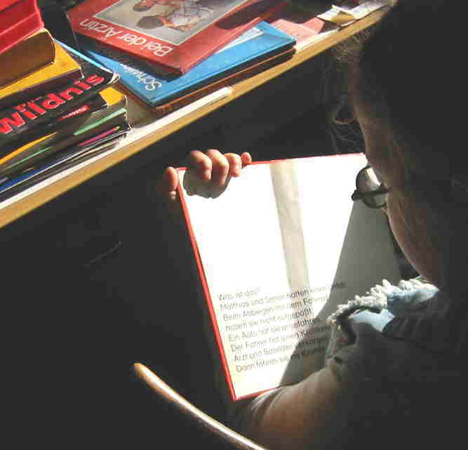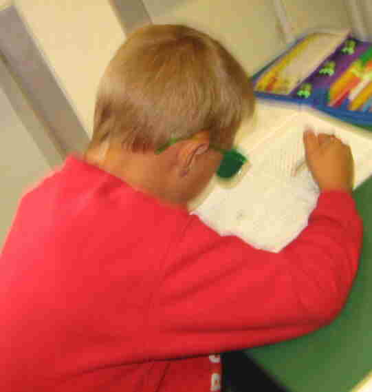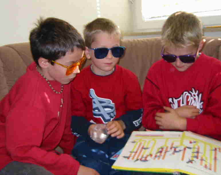 ![]() usw... Nach ein paar Tagen wissen Kinder, welche Farbe sie gerade vertragen könnten. Das "wilde" Mädchen hatte die blaue Brille eine Zeit lang auf. Es fiel den anderen auf, wie ruhig und gelassen sie wurde. Der müde kleine Junge möchte die orange Brille.. |