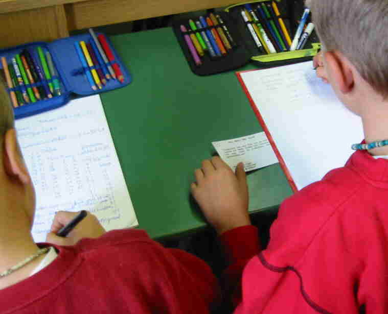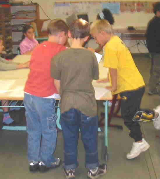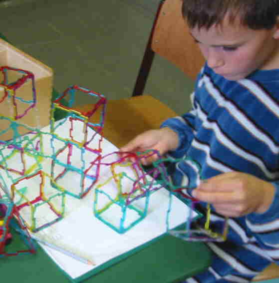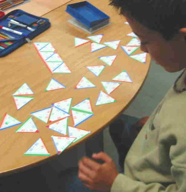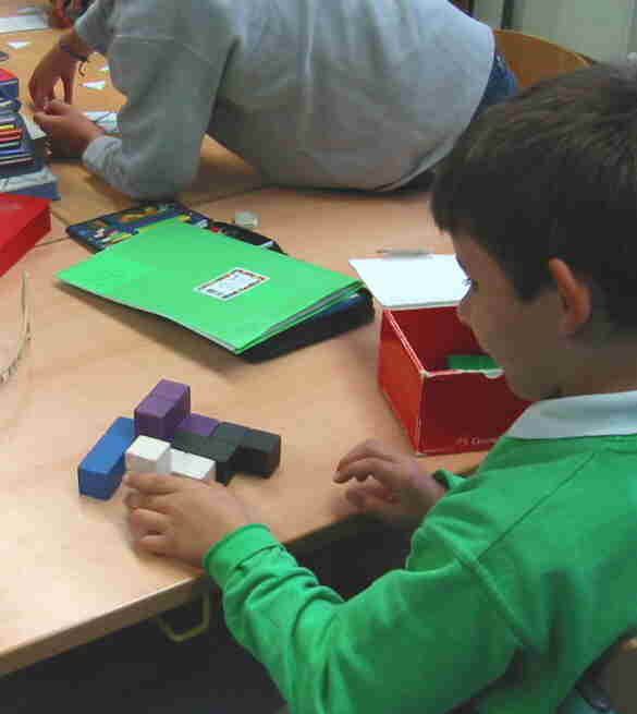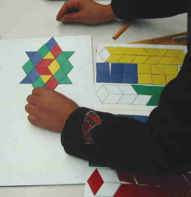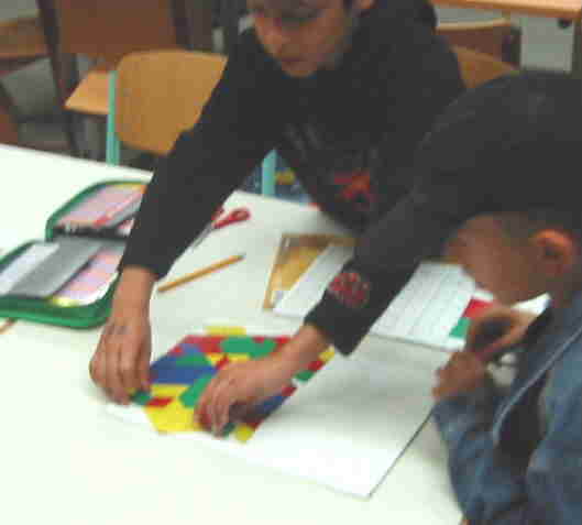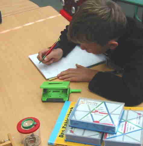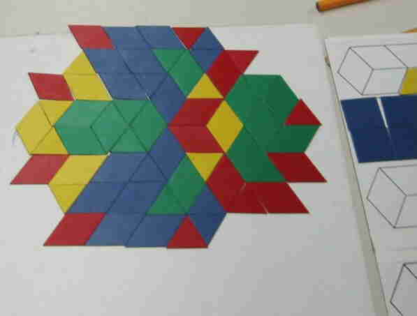 ![]() Formen zusammen setzen Vier von vielen Bildern aus einer Mathematikstunde dritte Klasse |