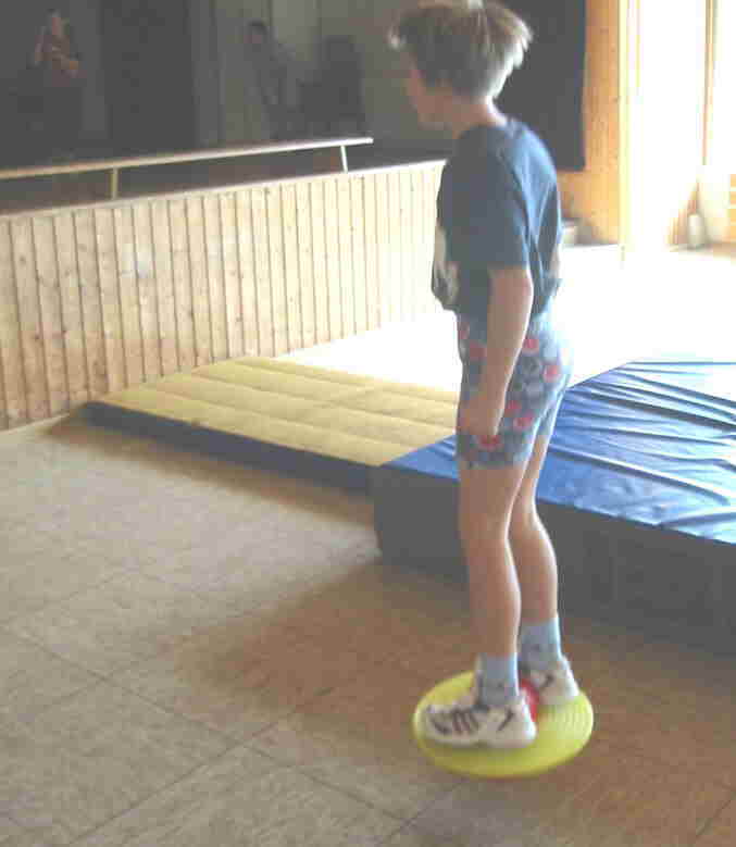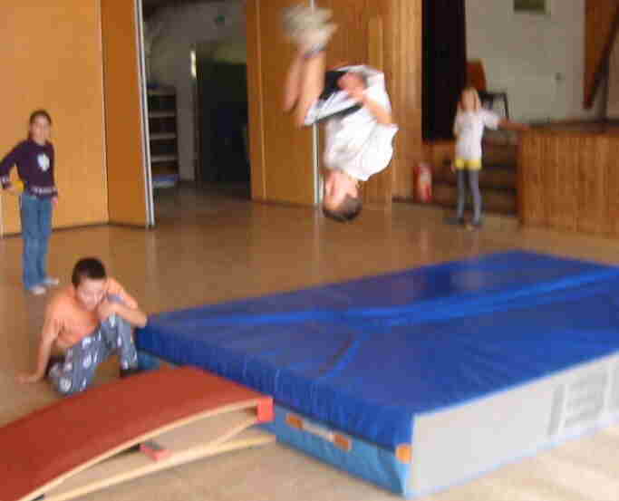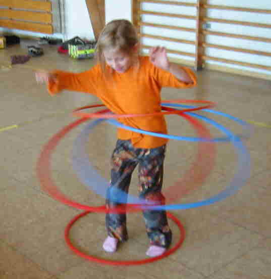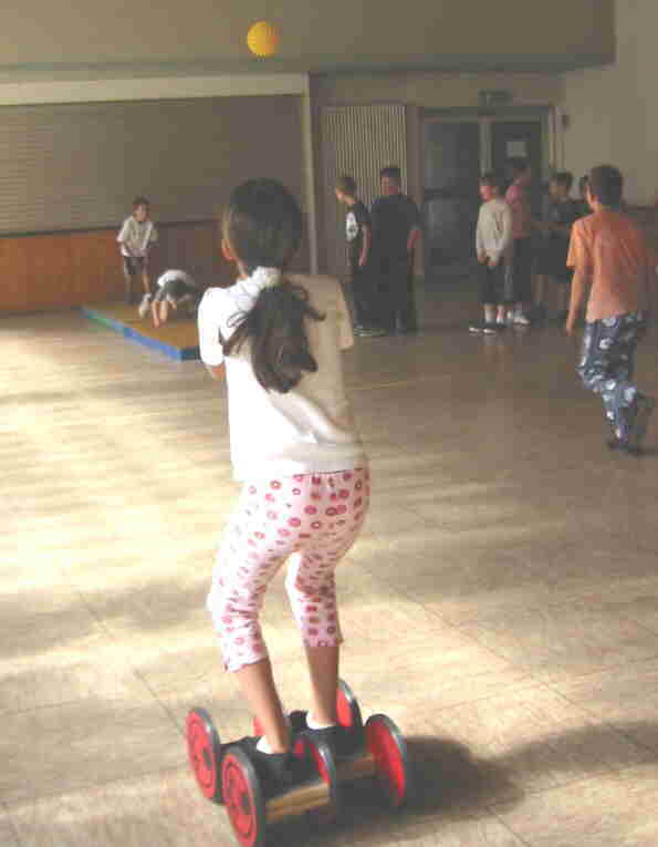 ![]() Schwebende Viertklässlerin. Eine Kollegin fand diese Hüpfbälle zu gefährlich. Sie machen die Kinder sicher. |