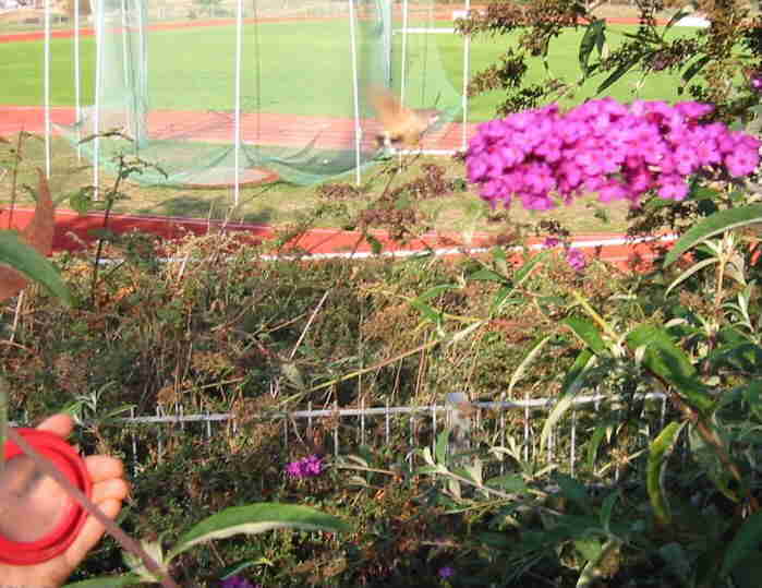 ![]() oben im Bild, kaum zu erkennen, ein Taubenschwänzchen Es schwirrt wie ein Kolibri. |