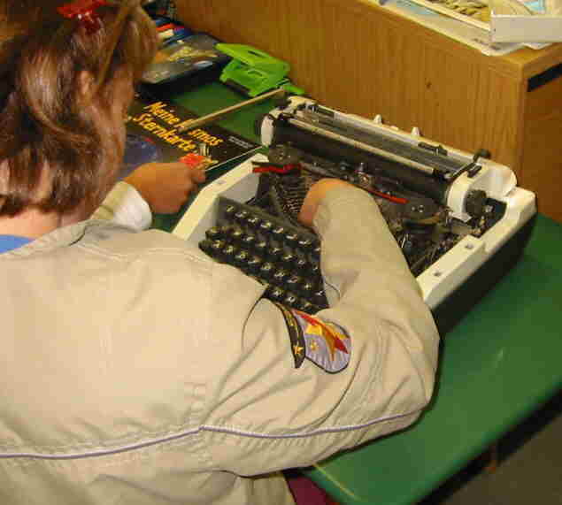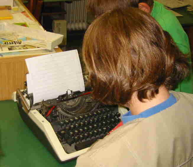 ![]() Kinder wollen die alte Schreibmaschine wieder in Gang bringen. |
