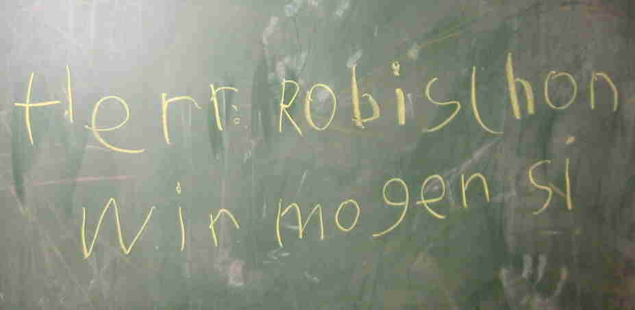 ![]() Netter Empfang in der Nachbarklasse. Nur einmal in der Woche hab ich da zu tun. Die Strichlein auf zum ö wurden kurz danach eingesetzt. |